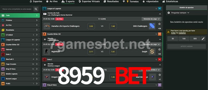 O 8959 Bet oferece uma grande seleção de opções de apostas em e-sports com probabilidades competitivas